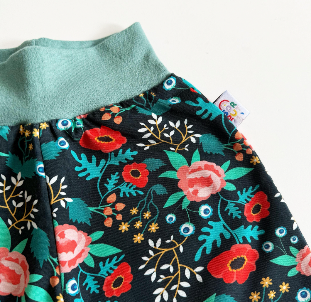 The cuffed ankles on these leggings mean that they will fit for longer, effectively growing with your child. The fit is cloth nappy friendly. There is also an elasticated waist for maximum comfort and fit.