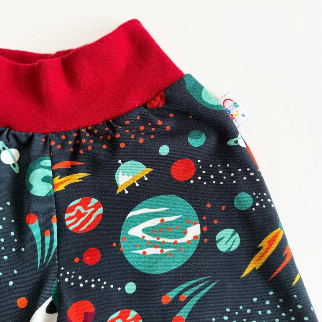 The cuffed ankles on these leggings mean that they will fit for longer, effectively growing with your child. The fit is cloth nappy friendly. There is also an elasticated waist for maximum comfort and fit.